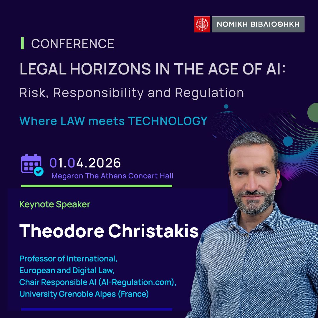 Professor Theodore Christakis will participate in the Law of Technology and Communications Conference on April 1, 2026, at the Nomiki Bibliothiki (National Library of Greece) in Athens, Greece.