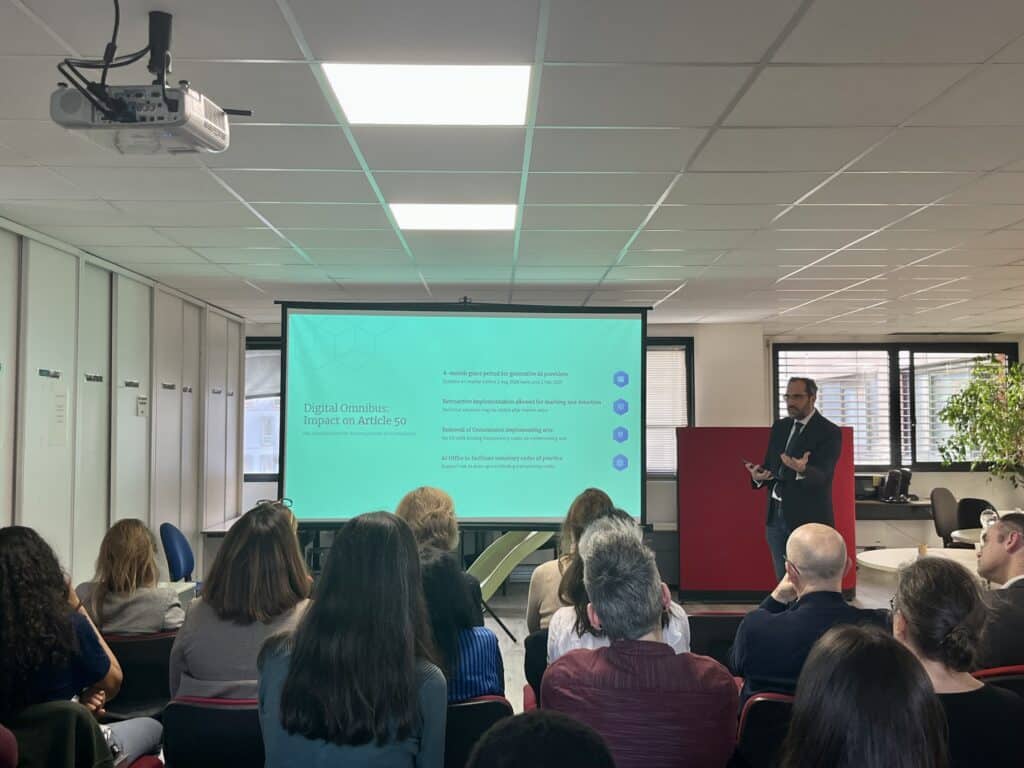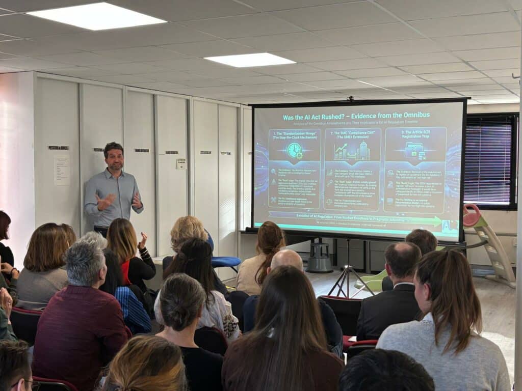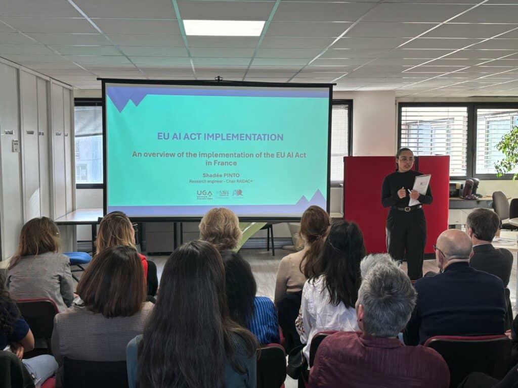 On January 15, Professor Theodore Christakis along with Dr Theodoros Karathanasis and Shadée Pinto presented to the regional department of the DGCCRF in Grenoble (Directorate-General for Competition, Consumer Affairs and Fraud Control) the EU AI Act, the challenges associated with its implementation, and the potential impact of the ‘Digital Omnibus on AI‘. This complemented an overview by Mr Philippe Wieczorek, director of the MIAI Cluster, on the current uses of AI and the associated risks.